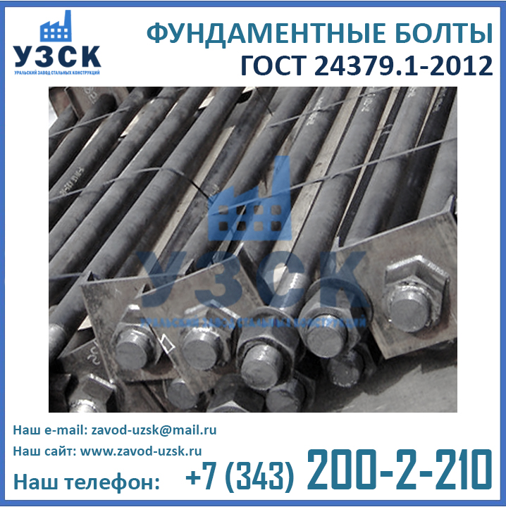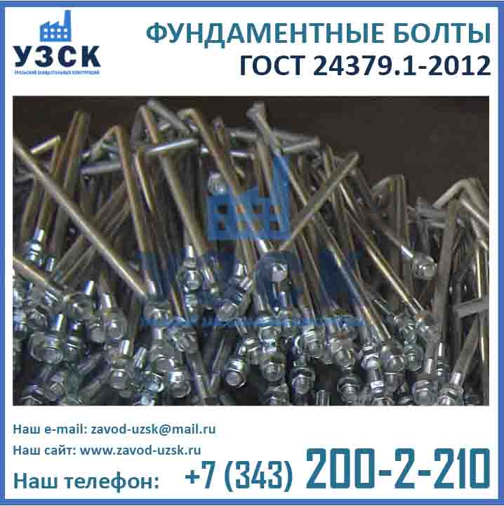 Приобретая болты ГОСТ 24379.1-2012 напрямую у завода-изготовителя вы не переплачиваете многочисленным посредникам. Кроме того, при обширных объемах закупки завод УЗСК предлагает скидки на анкерные болты М 12, М 16, М 20, М 24, М 30, М 36, М 42, М 48, М 52, М 56, М 64, М 72, М 80 и М 90.