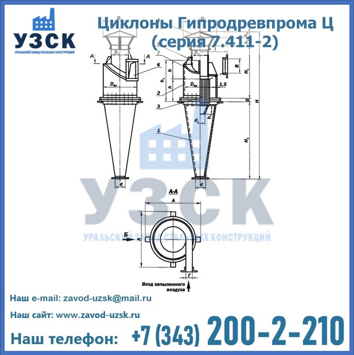 Циклоны Гипродревпрома Ц (серия 7.411-2) высокого качества можно купить в компании «УЗСК» в Железногорске. Наши специалисты предоставят всю необходимую информацию информацию и помогут с выбором модели циклона. Подробные технические характеристики, конструкцию, параметры, ассортимент и стоимость продукции можно также найти на сайте УЗСК.