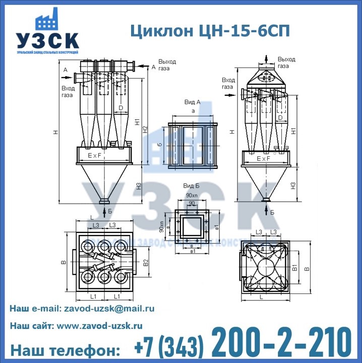 Завод «УЗСК» в Железногорске предлагает большой выбор циклонов ЦН-15-800×6СП и прочих устройств, полностью укомплектованных и готовых к эксплуатации. Мы гарантируем соответствие оборудования всем требованиям ГОСТ и ТУ, износостойкость и высокую производительность предлагаемого оборудования. Уральский Завод Стальных Конструкций изготавливает и продает надежное, эффективное и производительное оборудование, имеющее длительную гарантию и большой эксплуатационный ресурс. Если требуется изготовить циклон нестандартных размеров, то такой вариант выполнения заказа тоже предусмотрен, так как предприятие имеет собственные производственные площади и надежных поставщиков. На все поставляемое или производимое оборудование имеются чертежи и прочая техническая документация. Заказать и купить циклоны или прочее оборудование высокого качества и по доступной цене можно через наш сайт или по указанному в разделе «Контакты» телефону.