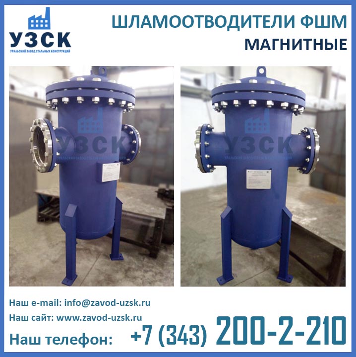 Являясь непосредственным изготовителем фильтров магнитных ФШМ, Уральский завод стальных конструкций предлагает самые низкие цены на шламоотделители ФШМ Ду250 в Железногорске. Производство магнитных шламоотводителей осуществляется в самые короткие сроки специалистами сварочного производства НАКС по аттестованной технологии сварки при помощи сварочного оборудования, аттестованного Национальным агентством контроля сварки.